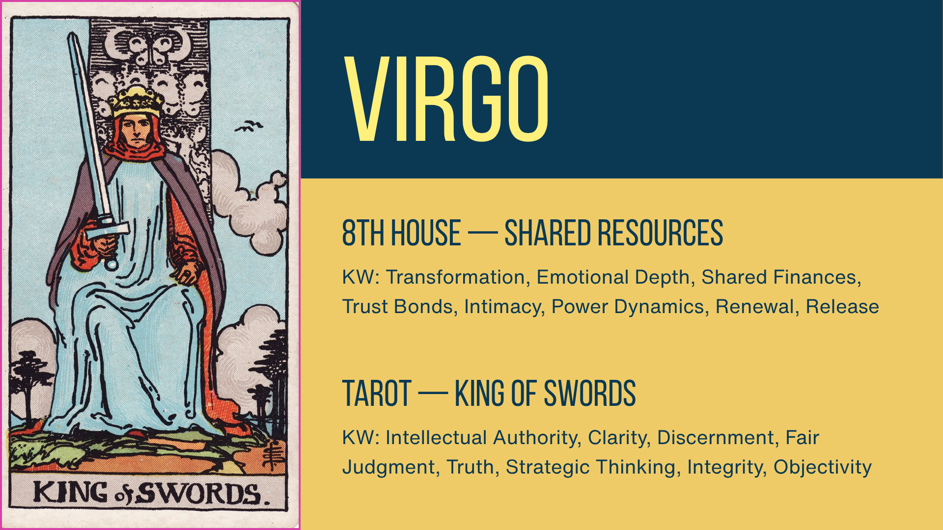 The King of Swords reflects intellectual mastery and the ability to see clearly through complexity. There is a strong sense of discernment, where fairness and precision guide understanding. Decisions arise from clarity rather than reaction, allowing thought to remain steady and composed. It can feel like stepping into a position of authority through intelligence, where judgment is both balanced and exact.
