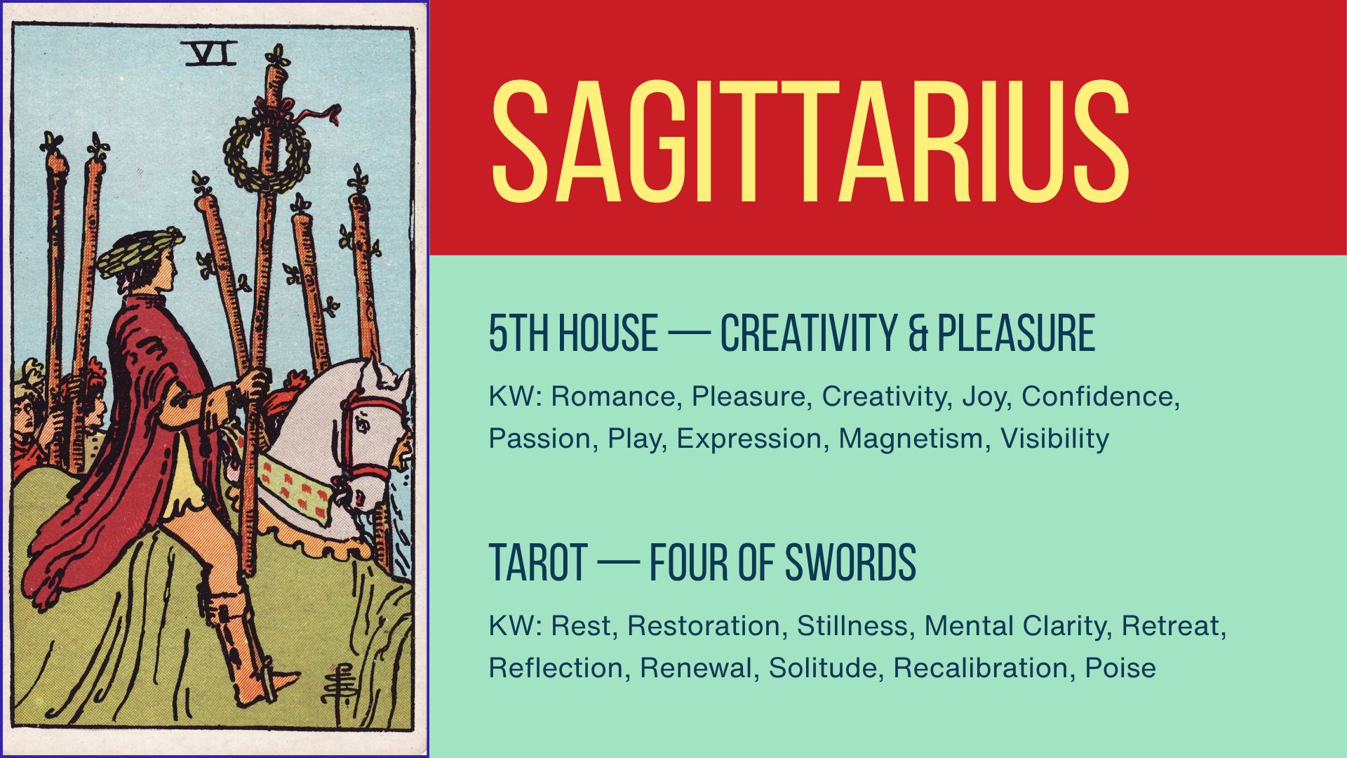 The Six of Wands reflects a moment of recognition, where effort meets acknowledgment and a sense of achievement becomes visible. There is pride in what has been accomplished and a feeling of standing in the light after sustained effort. Confidence grows through this experience, creating forward momentum. It can feel like your day in the sun, where success is not only felt internally but reflected back to you.